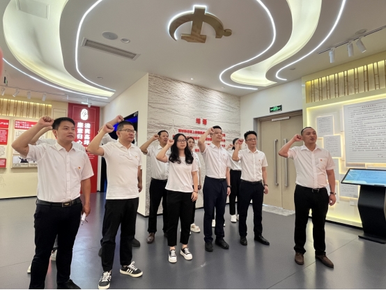 參觀結(jié)束后,全體黨員干部面對黨旗,高舉右拳,慷慨激昂,面向鮮紅的黨旗重溫入黨誓詞,重憶入黨初心,重新接受黨性洗禮。通過重溫入黨誓詞,進(jìn)一步增強(qiáng)了黨員干部的勤政廉政意識,引導(dǎo)大家牢記誓言,踐行承諾,帶頭加強(qiáng)自我約束,帶頭做到廉潔自律,持續(xù)筑牢廉潔自律“防火墻”,真正做到知敬畏、存戒懼、守底線,以鐵的意志抵制歪風(fēng)邪氣,以鐵的紀(jì)律嚴(yán)格自律要求,永葆清正廉潔的政治本色。