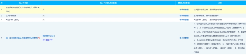 2、在修改頁(yè)面,可修改單位或個(gè)人的基本信息,點(diǎn)擊左上角的“電子件管理”可上傳相關(guān)附件: