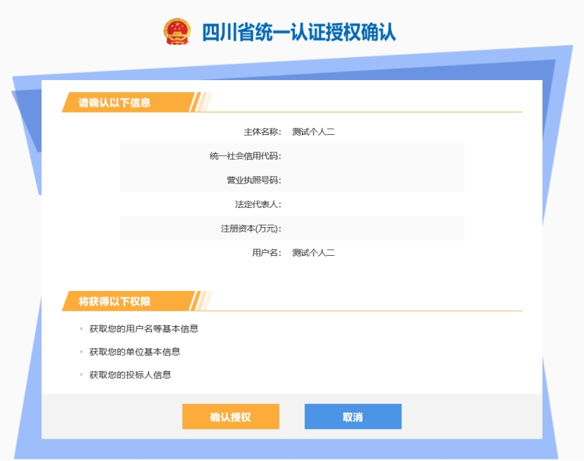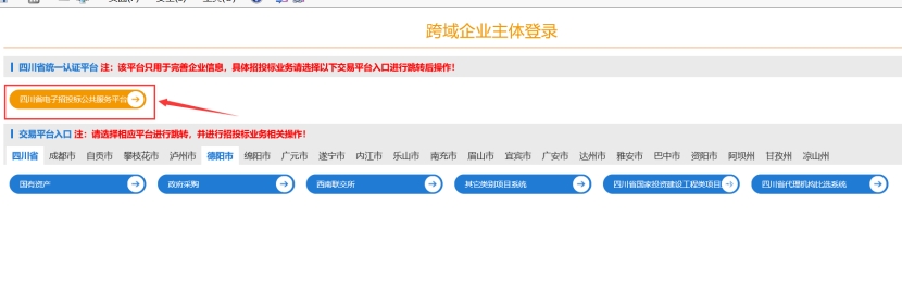 2、登陸后在此頁(yè)面點(diǎn)擊“四川省電子招投標(biāo)公共服務(wù)平臺(tái)”,并點(diǎn)擊確認(rèn)授權(quán):