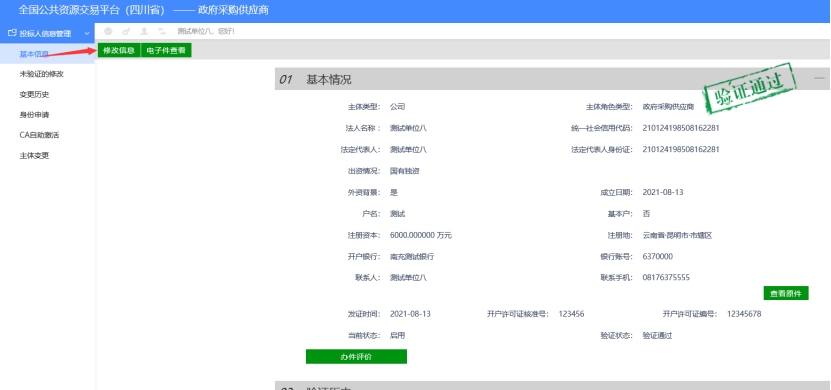 1、進(jìn)入后“基本信息”頁(yè)面,點(diǎn)擊“修改信息”: