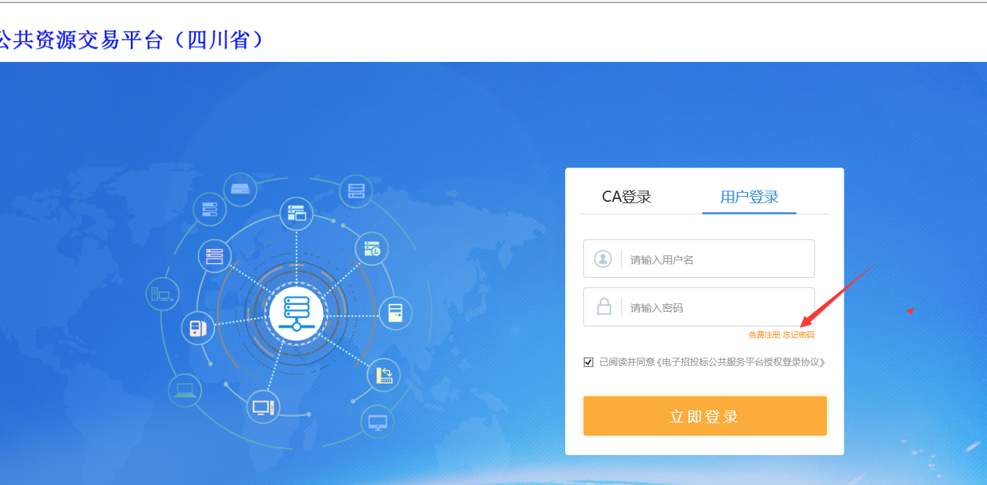 1、請訪問地址:http://ggzyjy.sc.gov.cn/PSPSSO/login/oauth2login,登錄四川省統(tǒng)一認證平臺,點擊登錄頁面【忘記密碼】按鈕。